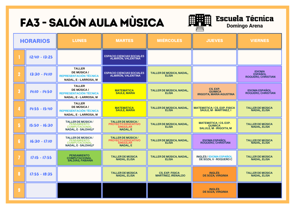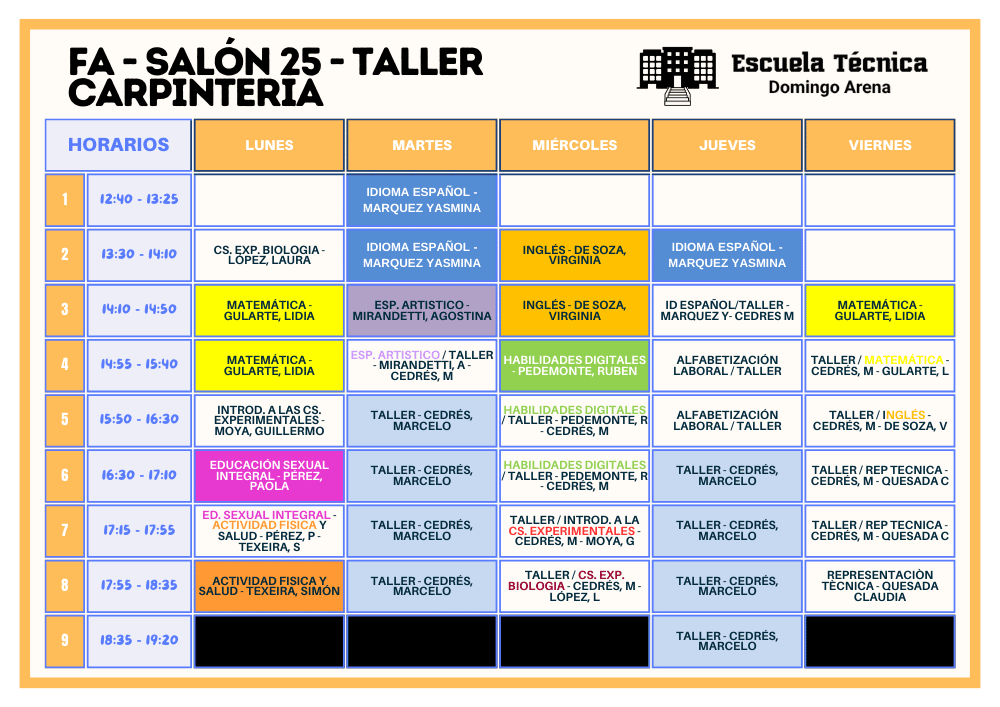 Horarios FPB 2026 Horarios separados por turnos TURNO VESPERTINO Formación Profesional Básica FA - CARPINTERÍA (PLAN 2025) Formación Profesional Básica FA3 - MÚSICA (PLAN 2021)
