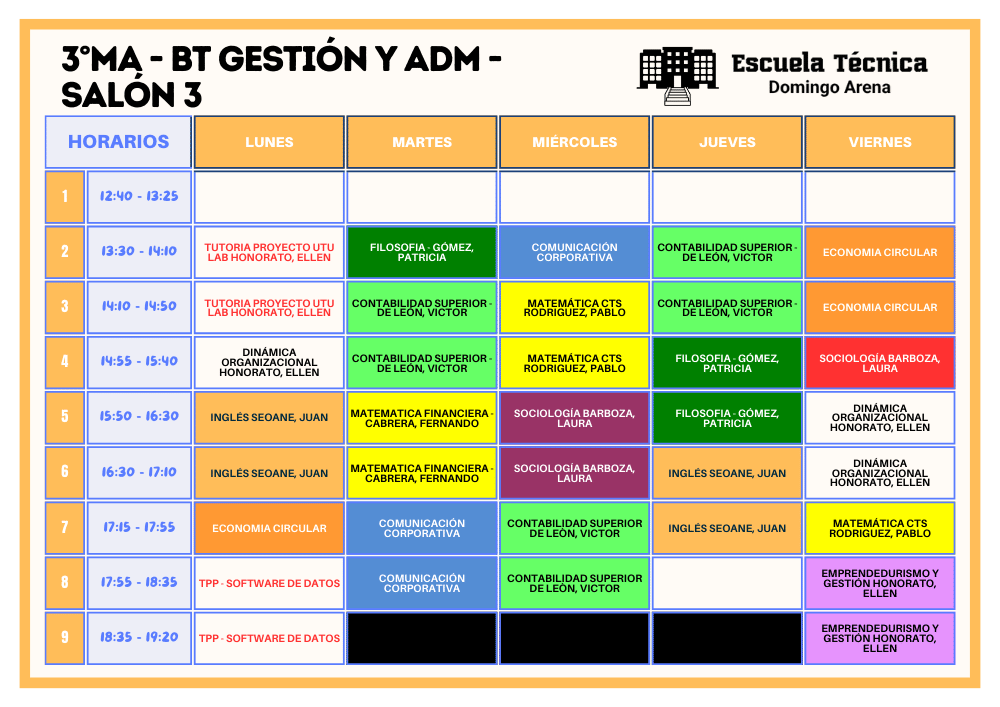 Horarios BT 2026 Horarios separados por turnos TURNO VESPERTINO Bachillerato Tecnológico 1°MA - GESTIÓN Y ADMINISTRACIÓN Bachillerato Tecnológico 2°MA - GESTIÓN Y ADMINISTRACIÓN Bachillerato Tecnológico 3°MA - GESTIÓN Y ADMINISTRACIÓN TURNO NOCTURNO Bachillerato Tecnológico 2°MC - GESTIÓN Y ADMINISTRACIÓN Bachillerato Tecnológico 3°MB - GESTIÓN Y ADMINISTRACIÓN
