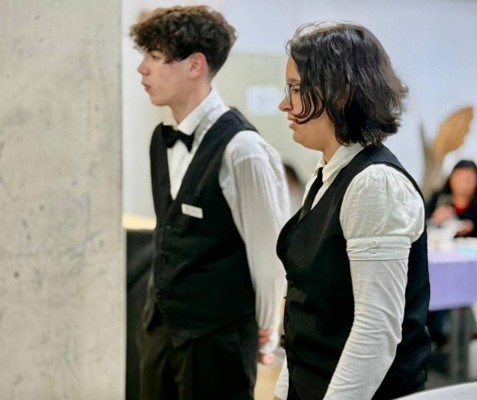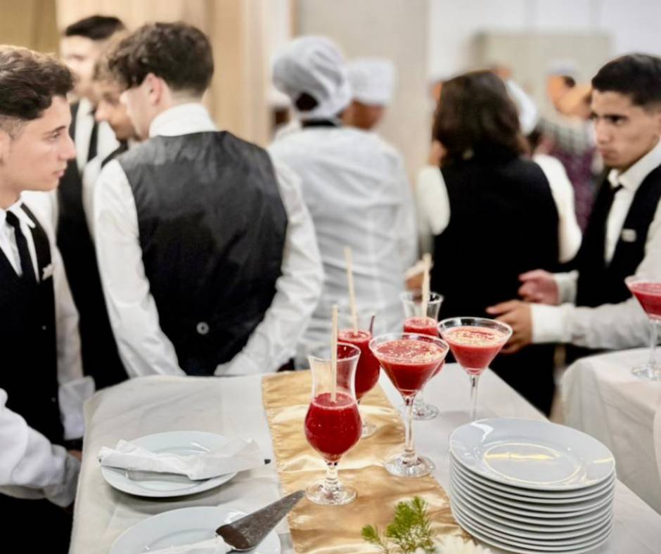 La jornada permitió integrar contenidos de montaje de mesa, servicio de bebidas calientes, atención al comensal, presentación de productos de pastelería y trabajo en equipo. Los alumnos asumieron con responsabilidad los distintos roles de servicio, destacándose por su compromiso, coordinación y cuidado en cada detalle.